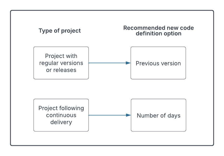 Then, you define what is considered new code in your project, adapting your configuration to the nature of your project: versioned, continuous delivery, etc.