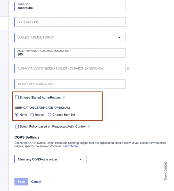 To configure the resquest signing and/or the assertion decryption in SonarQube Server: