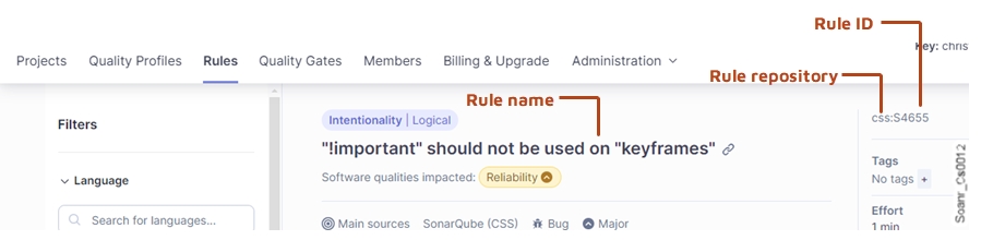 ruleRepository: is the identifier of the rule repository Examples: SonarQube java (identifier: java) or Security SonarAnalyzer PHP (identifier: phpsecurity), etc. You can use the wildcard pattern * (any string) to define the rule repository.